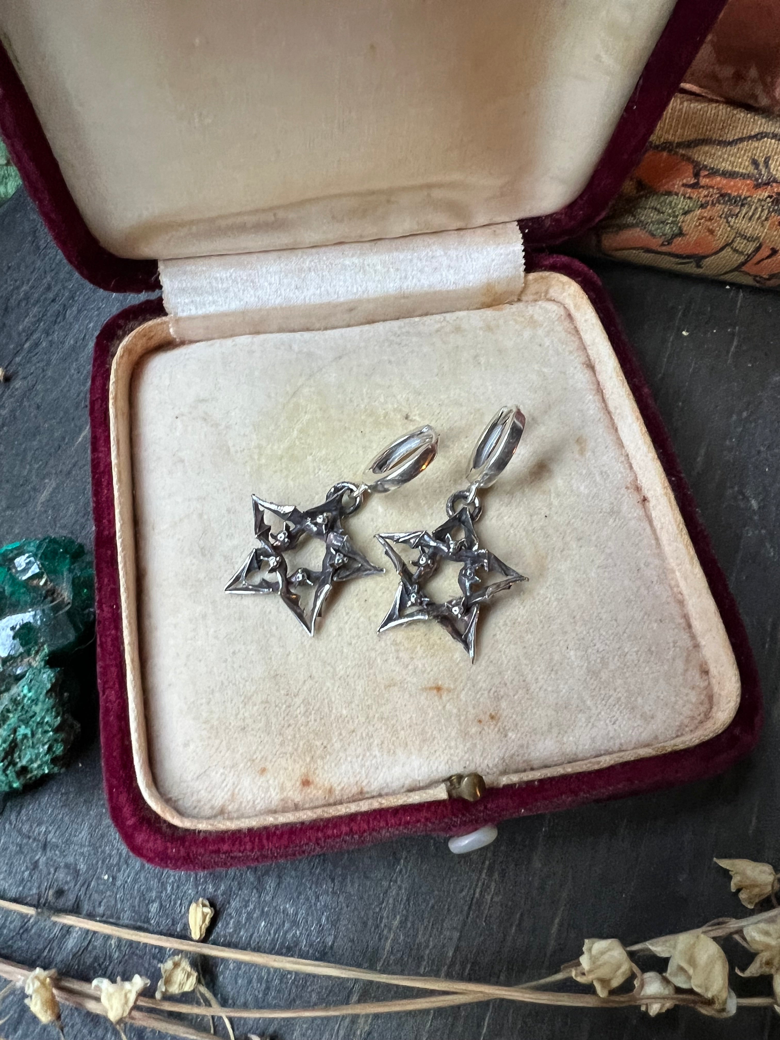these are mini bat pentagrams that are sterling silver earrings - they are 15mm